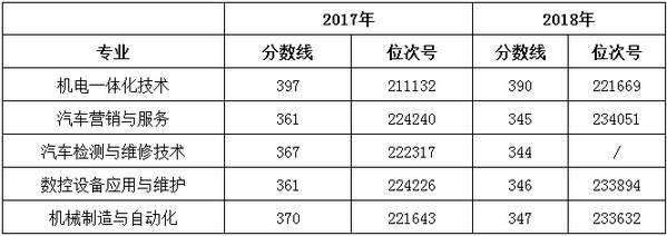 2017-2018年分专业高考统一招生(普通类)录取分数线及排名