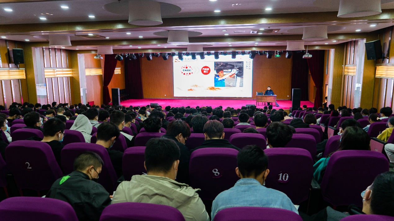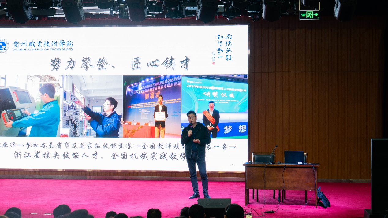 稍后,王胜老师讲述了他的学习和工作经历。从高职员工成长为高职教师,同学们感受到了求学求技道路上的挑战和机遇。成长成才的道路漫长不易,作为职业技能竞赛领域的前辈和老师,王老师告诫同学们:我们都不是高考的失败者,而是选择了一条技能成长之路。只要抓住机遇、不断探索,努力攀登,开拓自强,未必不能成为一名高素质的技术技能人才!“毕竟,梦想还是要有的,万一实现了呢?”王老师这样说道。