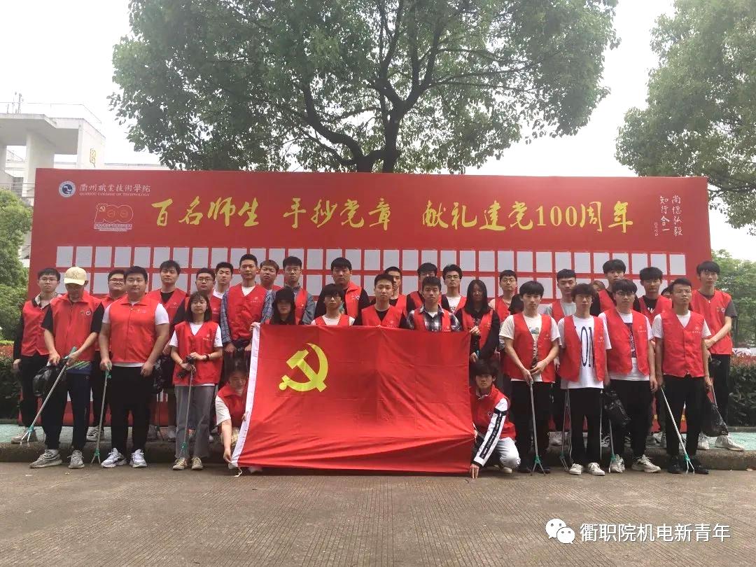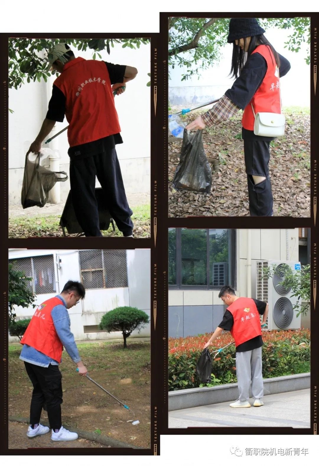 424日中午,tyc122cc太阳成集团党总支组织发展对象开展志愿服务活动,校园里多了一道红色的风景线。34名身穿“早起鸟儿”志愿马甲的机电新青年活跃在校园的各个角落。