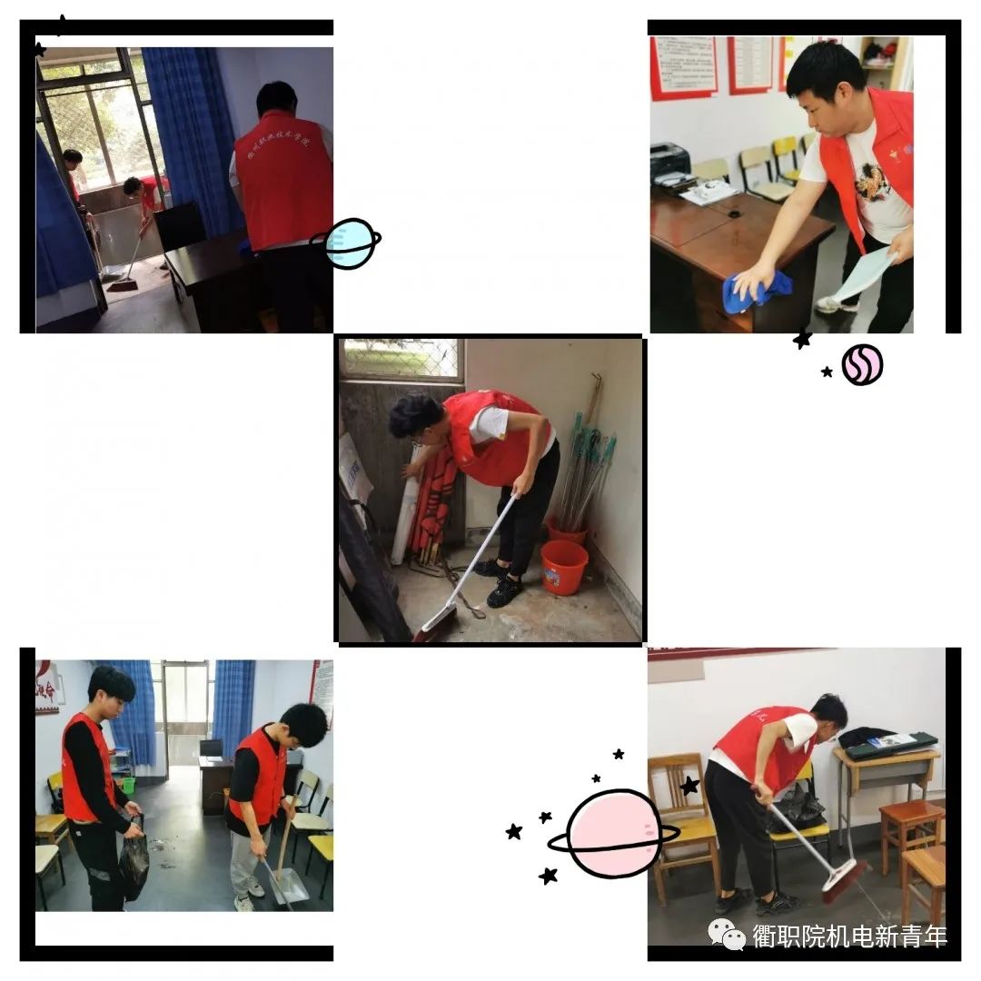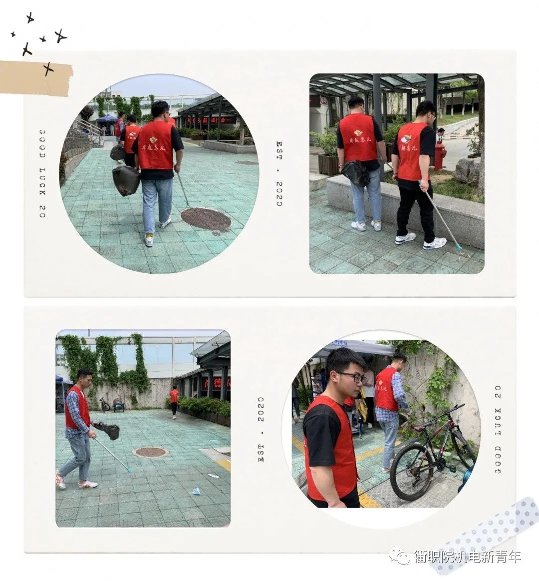 4月24日中午,tyc122cc太阳成集团党总支组织发展对象开展志愿服务活动,校园里多了一道红色的风景线。34名身穿“早起鸟儿”志愿马甲的机电新青年活跃在校园的各个角落。