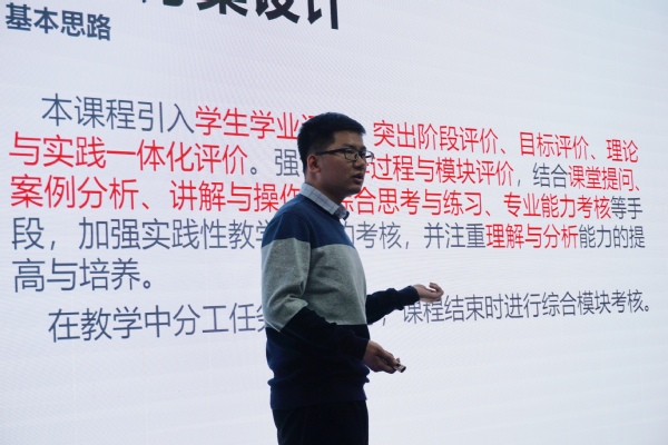 通过前期报名、文本材料提交,共有四名教师进入到最后决赛。现场决赛主要包括两部分:一是教学实施报告,简要介绍教学实施报告的主要内容、创新特色,共计5分钟;二是教学展示,进行5分钟无员工教学展示(如,新知讲解、示范操作、学习结果分析、课堂教学小结等)。历经一个小时的激烈比拼,共评出本次比赛的一二三等奖及本次活动的最佳组织奖。