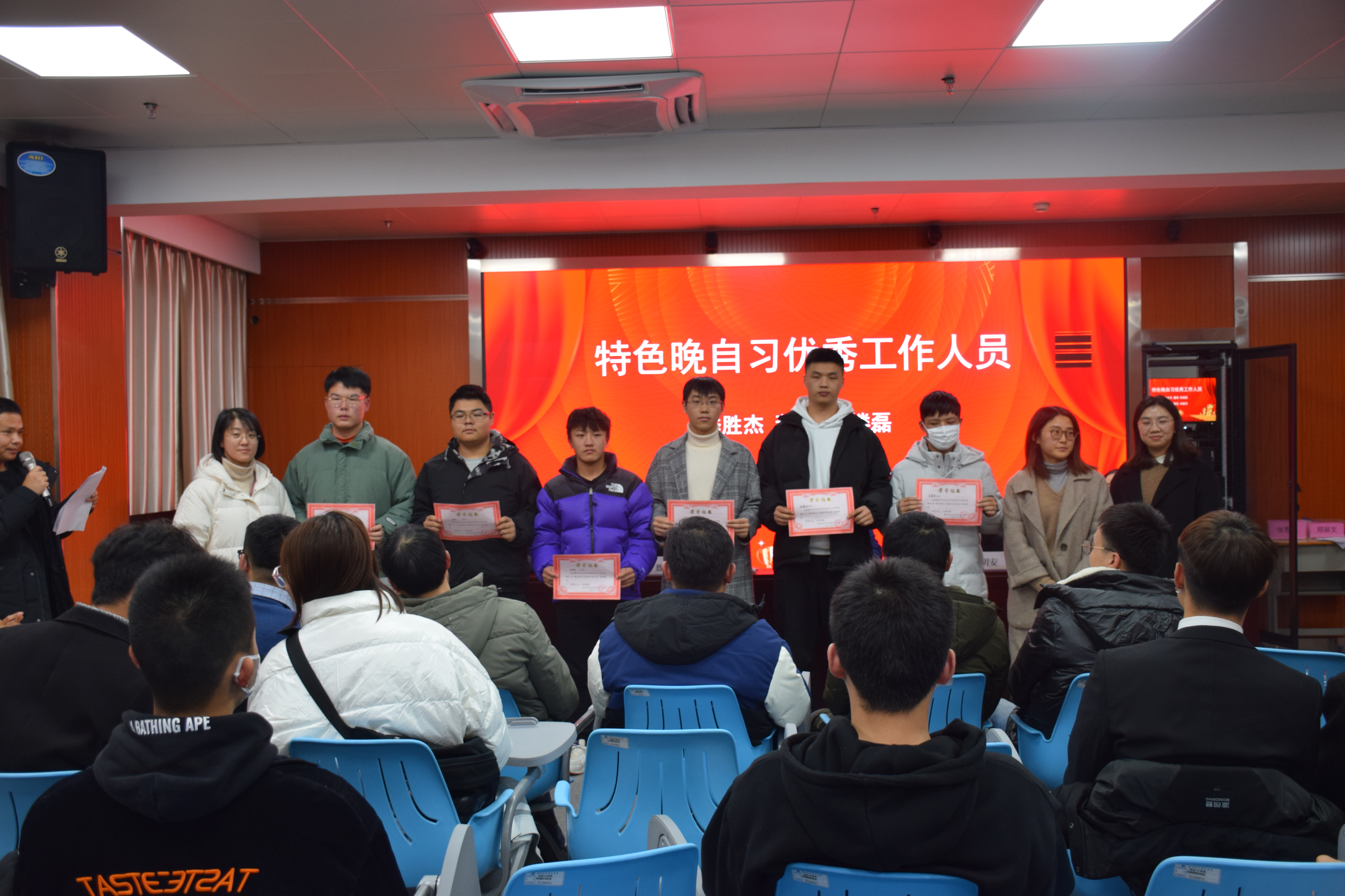 为充分发挥晚自习在立德树人工作中的阵地作用,促进员工德智体美劳全面发展,以点带面引导员工规范行为,使晚自习成为教育新阵地。12月30日晚,tyc122cc太阳成集团于机电大楼303开展2021级特色晚自习评选表彰大会。 tyc122cc太阳成集团党总支班子成员出席表彰大会并为获奖班级颁奖。参加本次活动的还有2021级全体新生班主任、全体辅导员,本次活动由辅导员李治丹主持。