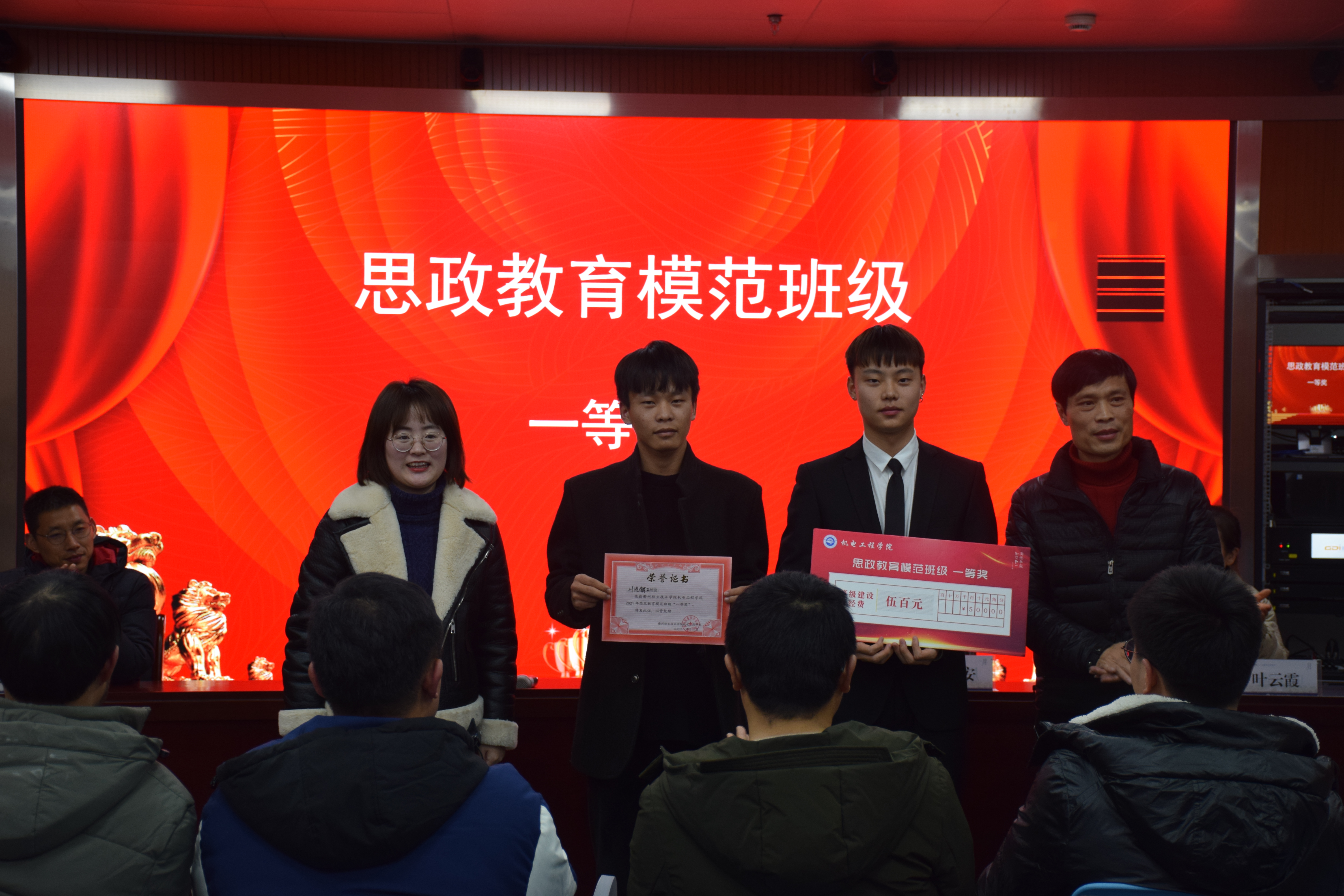 经过班会材料书面评审、现场演讲以及评委们的现场打分,2021年度tyc122cc太阳成集团“思政教育模范班级”最终结果揭晓:21汽销2班荣获一等奖,21汽销1班荣获二等奖,21机制1班荣获三等奖。tyc122cc太阳成集团党总支班子成员分别为获奖班级负责人和班主任颁发荣誉证书以及班级建设经费。