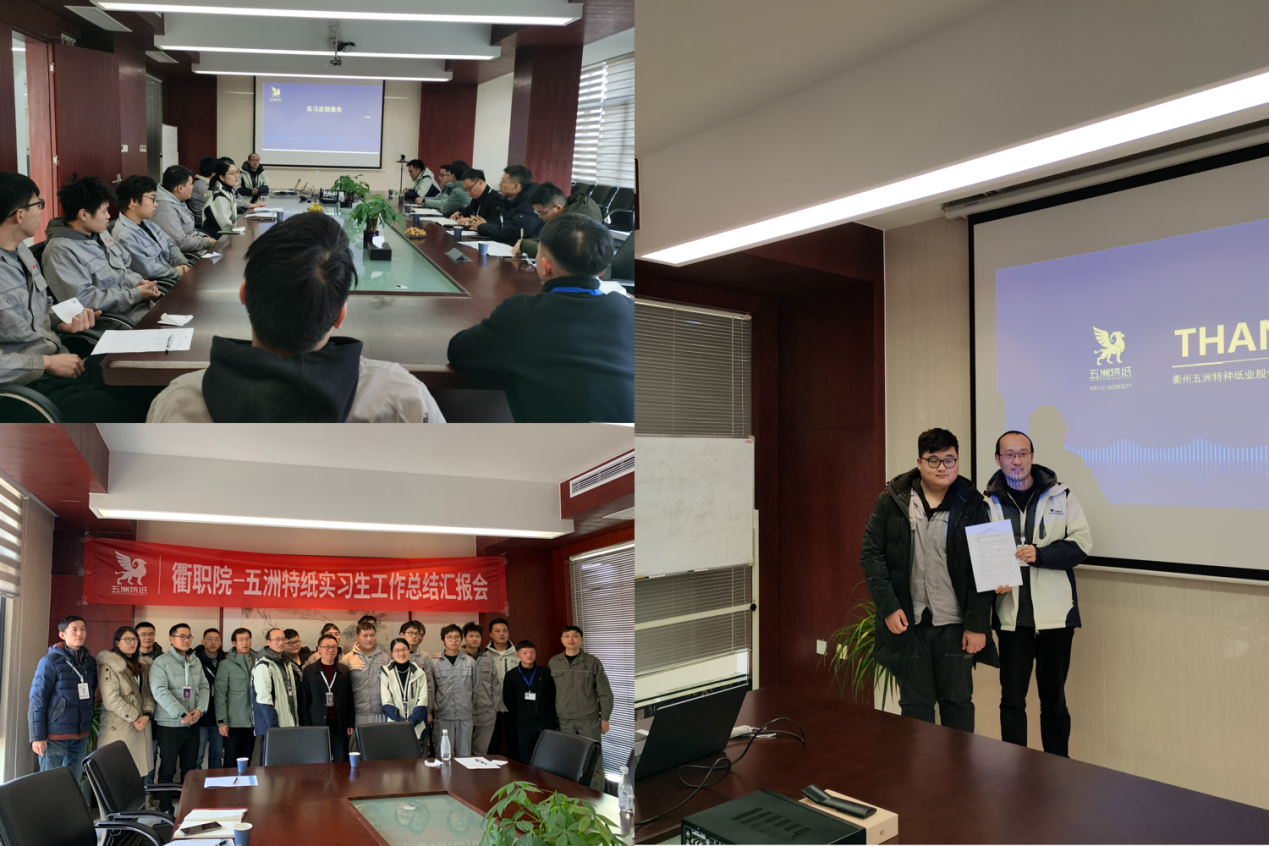 首先由在岗实习员工汇报实习情况,实习员工统一着装,精神饱满,通过PPT展示,就各自在工作、技能提升、沟通能力和生活畅所欲言。汇报结束后,校企双方就接下来人才培养、毕业生留衢发展的具体举措深入交换了意见。校方感谢企业提供实习岗位,利用“传帮带”模式促进员工全面发展,肯定员工在岗期间综合能力的提升;同时希望通过跟岗实习的方式加强校企双方合作力度,共同营造留住人才的良好环境。企业结合自身快速发展的需求,望尽快与tyc122cc太阳成集团达成长期密切合作,在“点”的努力基础上扩大到“面”的发展,通过开办“五洲特纸班”,将留住人才持续做下去。