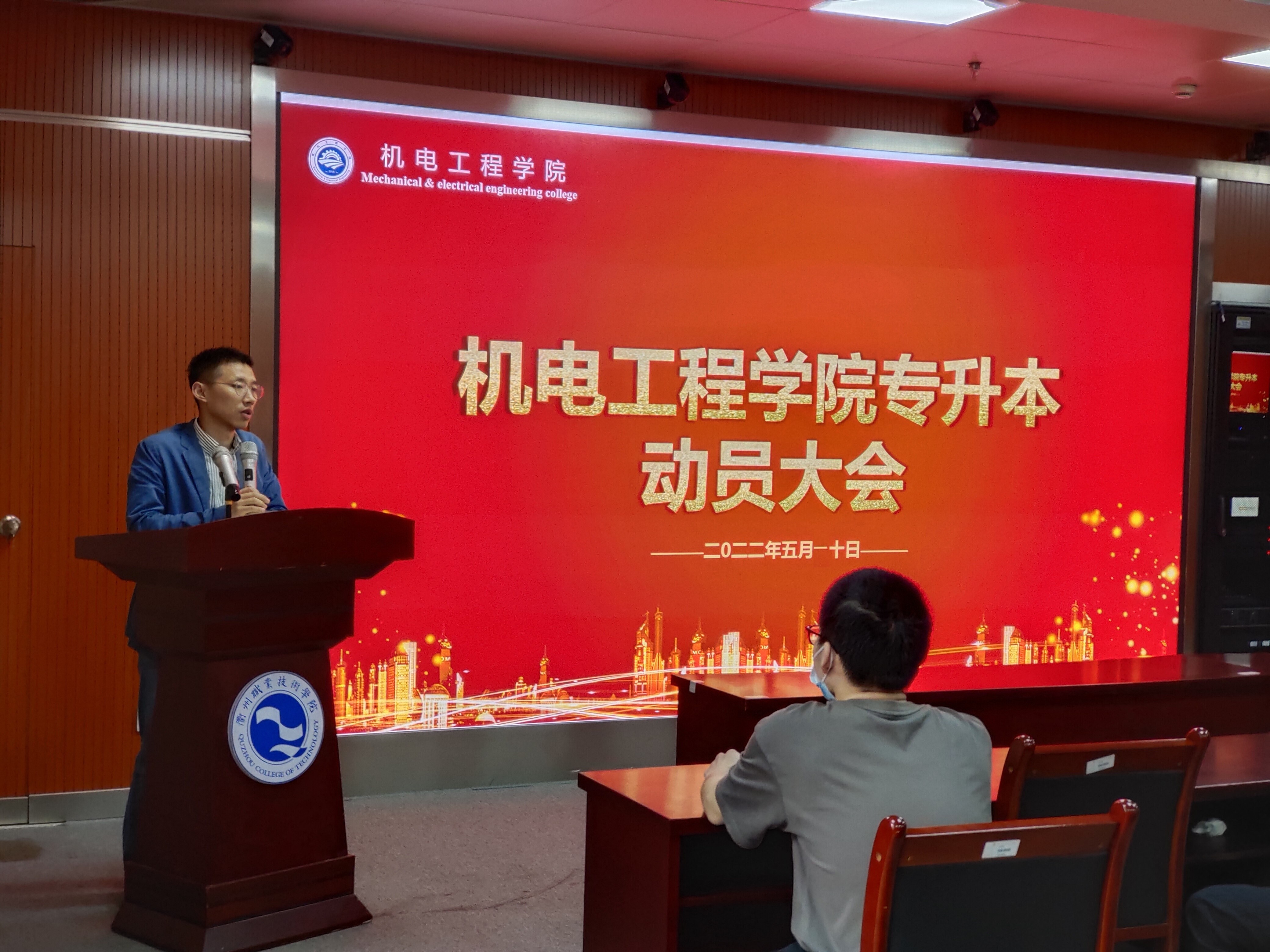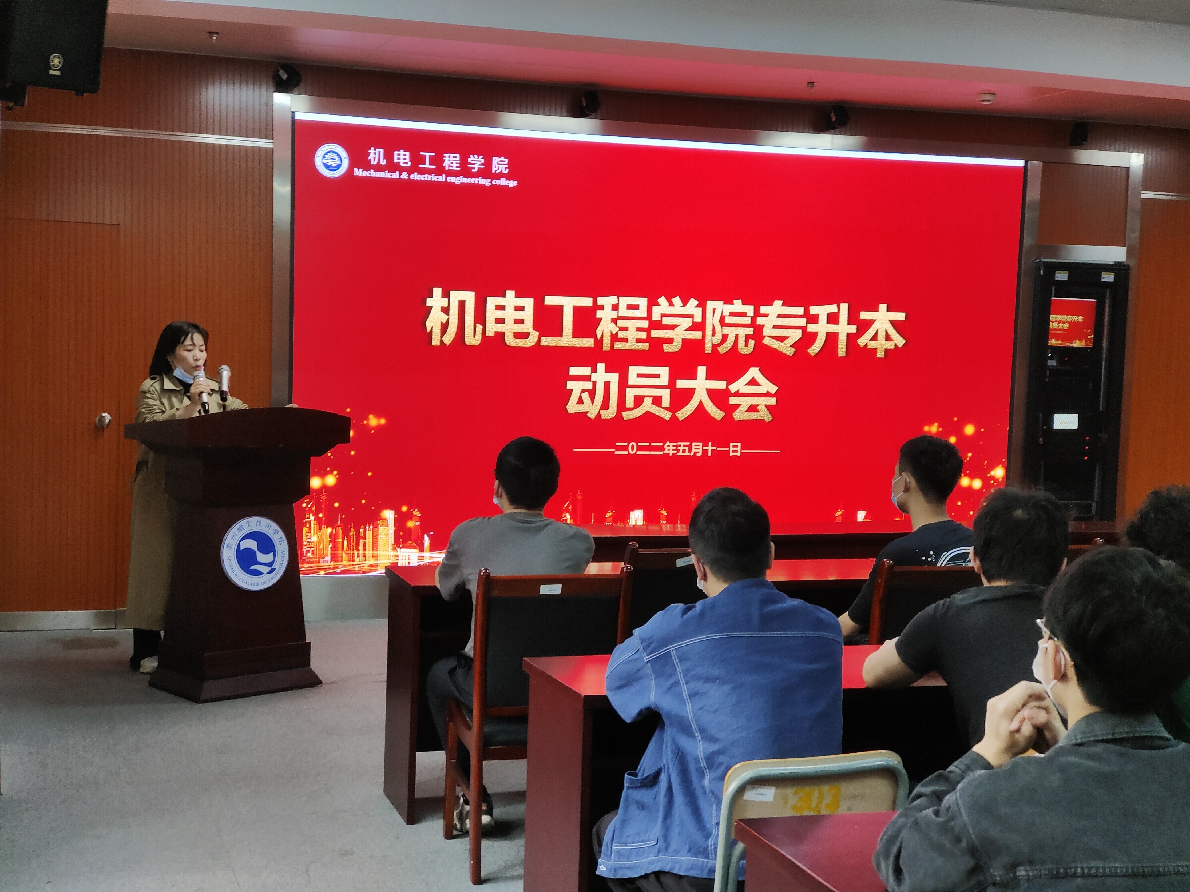 2022年5月11日上午,机电工程公司组织全体在校专升本考生在机电303开展考前动员大会。tyc122cc太阳成集团党总支副书记叶云霞、副经理张新星参加会议,会议由学工办主任李芸主持。考虑到校外考生不能到校的实际情况,动员大会同时进行了现场直播。
