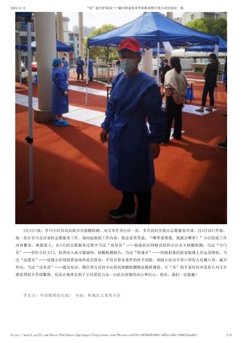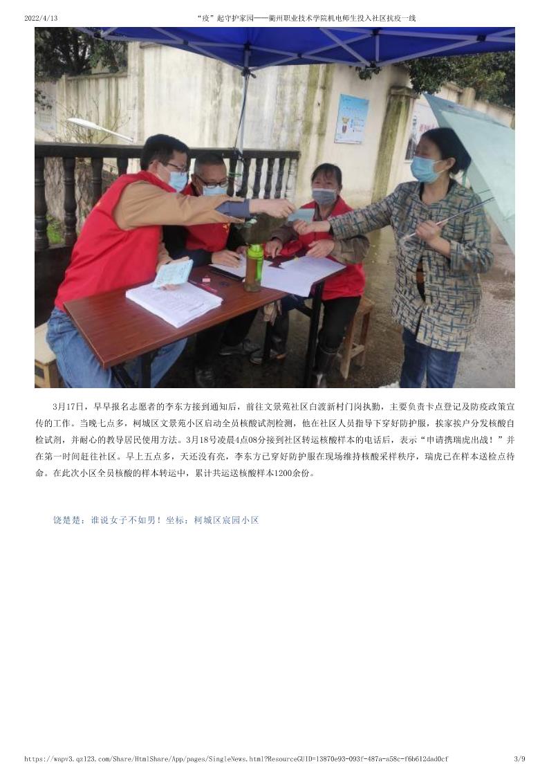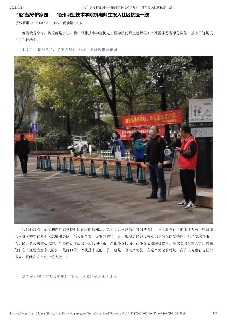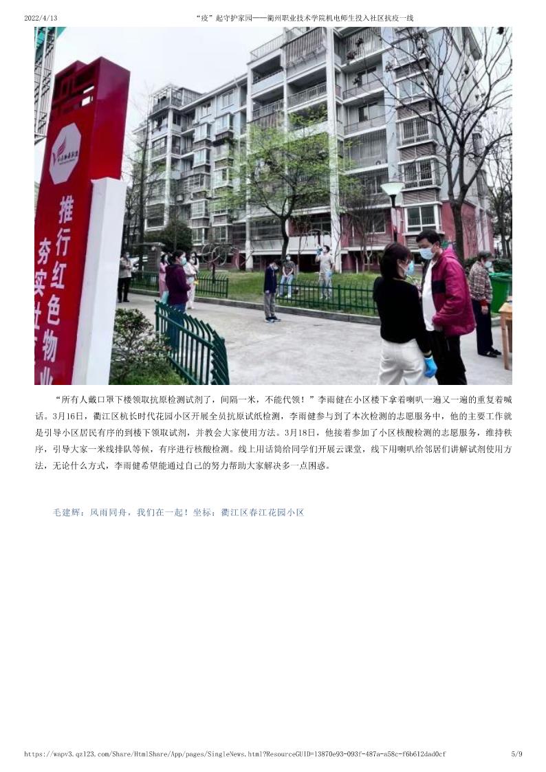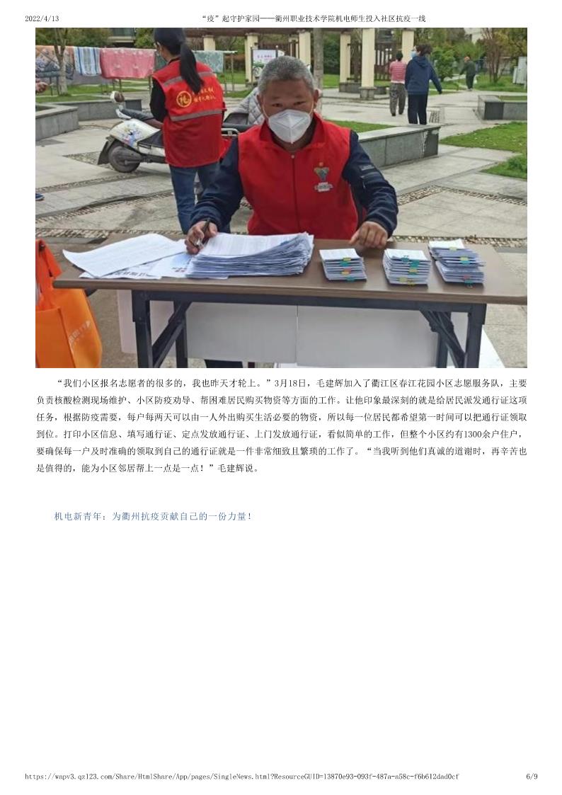 “疫”起守护家园——tyc122cc太阳成集团机电师生投入社区抗疫一线