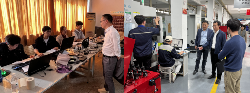 朱峻、魏小华在实训场地对正在浙江工业职业技术公司备战全国职业院校技能大赛的汪文娟(机电第三党支部党员教师)、邵思程以及五位员工进行亲切慰问,鼓励大家要充分利用技能竞赛的平台,抓住机会,不断学习、深挖钻研,提升自身的技能水平和综合素质,祝愿他们在全国职业院校技能大赛中发挥出最好水平,取得优异的成绩。