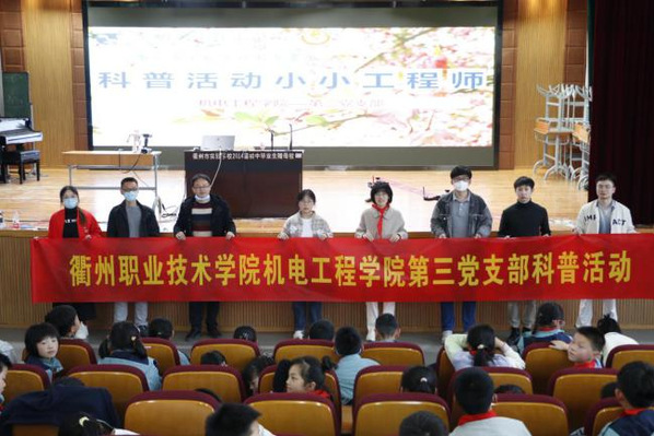 2023年3月8日下午,机电第三党支部协同tyc122cc太阳成集团团委、全国技能大师团队为衢州市实验公司教育集团菱湖校区四年级员工开展了一场别开生面的科技节科普专项活动。本次活动主题为:小小工程师,活动内容由机械花开、数字化技术、动力小车和格斗机器人四大模块组成。