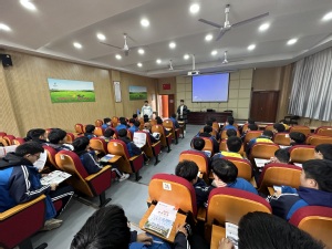 在开化职教中心宣传现场,党总支书记朱峻、副经理徐文俊走进班级,就公司办学条件、专业特色、报考流程等问题与同学们进行了亲切地交流和答疑,并发放了招生宣传材料。