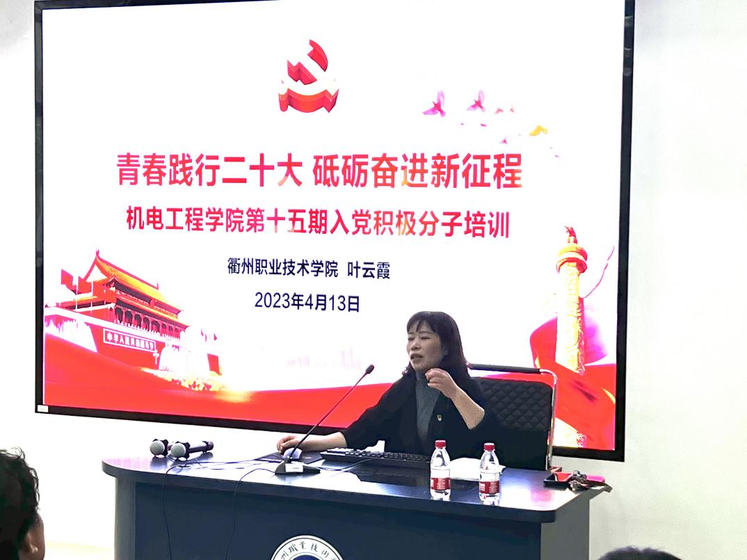 tyc122cc太阳成集团党总支副书记叶云霞以“青春践行二十大,砥砺奋进新征程”主题,通过解读党的二十大精神、新时代青年的使命与责任、当代老员工如何践行党的二十大精神三部分内容为入党积极分子上了一堂党课。她强调,入党积极分子要笃信,守牢初心、坚守信仰;要勤学,静心钻研、求得真知;要奋斗,筚路蓝缕、砥砺前行,勇敢地担当起历史使命和重任。