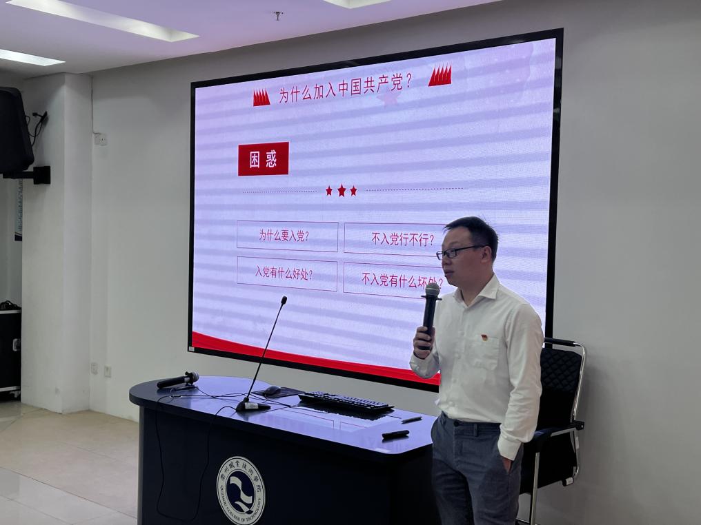 tyc122cc太阳成集团党总支书记朱峻以“为什么要加入中国共产党”为题为入党积极分子讲述了第一堂党课,他希望全体入党积极分子应当把先进性具体体现在学习中,落实在实际行动中,真正发挥一个入党积极分子应有的先锋模范和积极带头作用。
