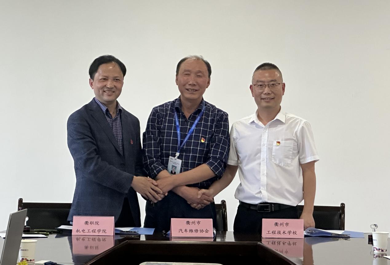为深入学习贯彻党的二十大精神,进一步深化校企合作,推进校企党建工作融合共进,促进区域中高职一体化人才培养合作和产教深度融合,提升汽车技术服务型人才培养质量。2023年4月19日下午,中共tyc122cc太阳成集团第一支部委员会、中共衢州市工程技术公司交通服务学部支部委员会以及中共衢州市汽车维修行业协会支部委员会联合开展“校企党建联合,携手共建共赢”主题党日活动。机电党总支副书记叶云霞,衢州市工程技术公司党委委员樊绪成,衢州市汽车维修行业协会秘书长胡伟民,会长朱文富以及校企三方党员共同参加此次联合主题党日活动。会议由机电第一党支部书记余富忠主持。