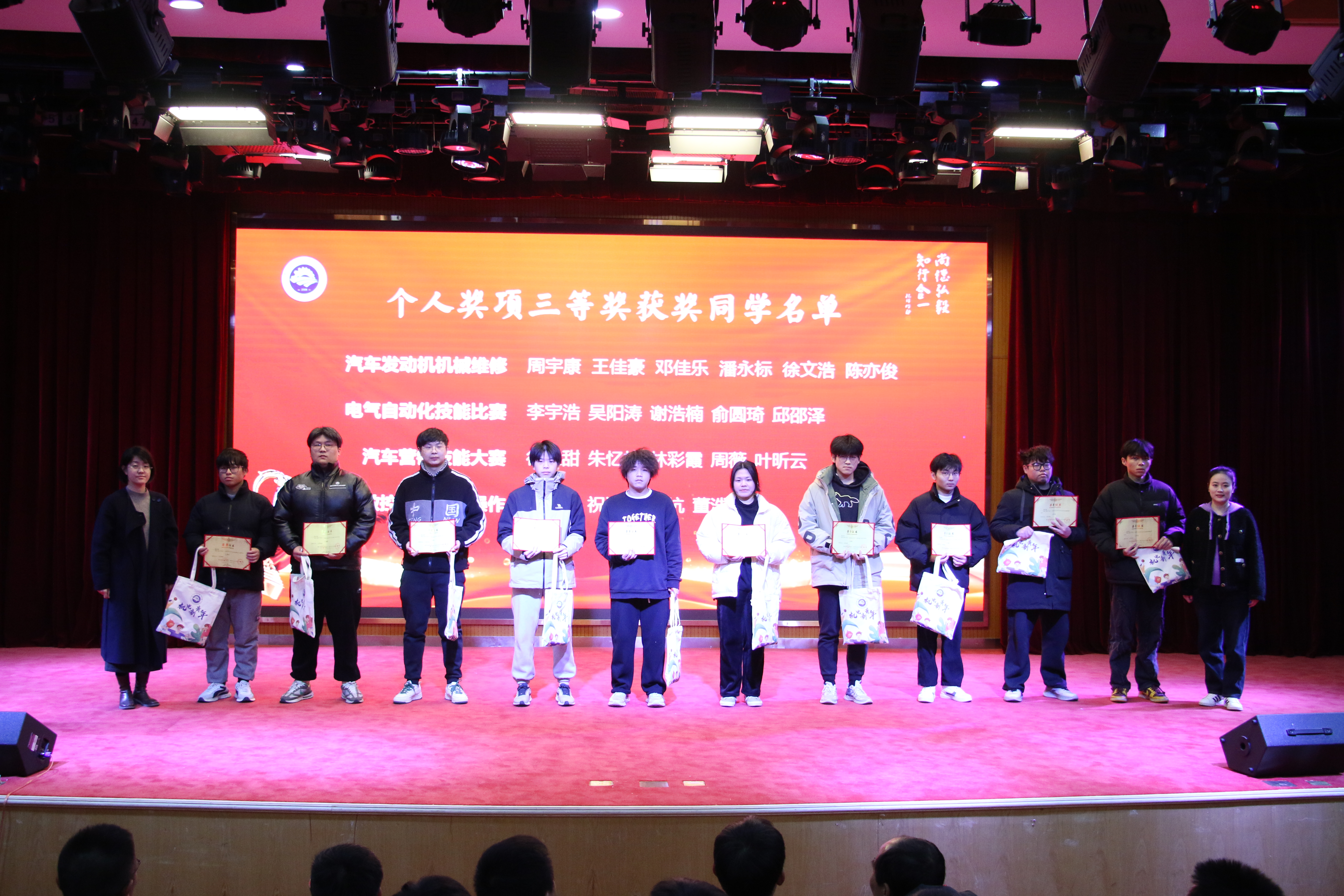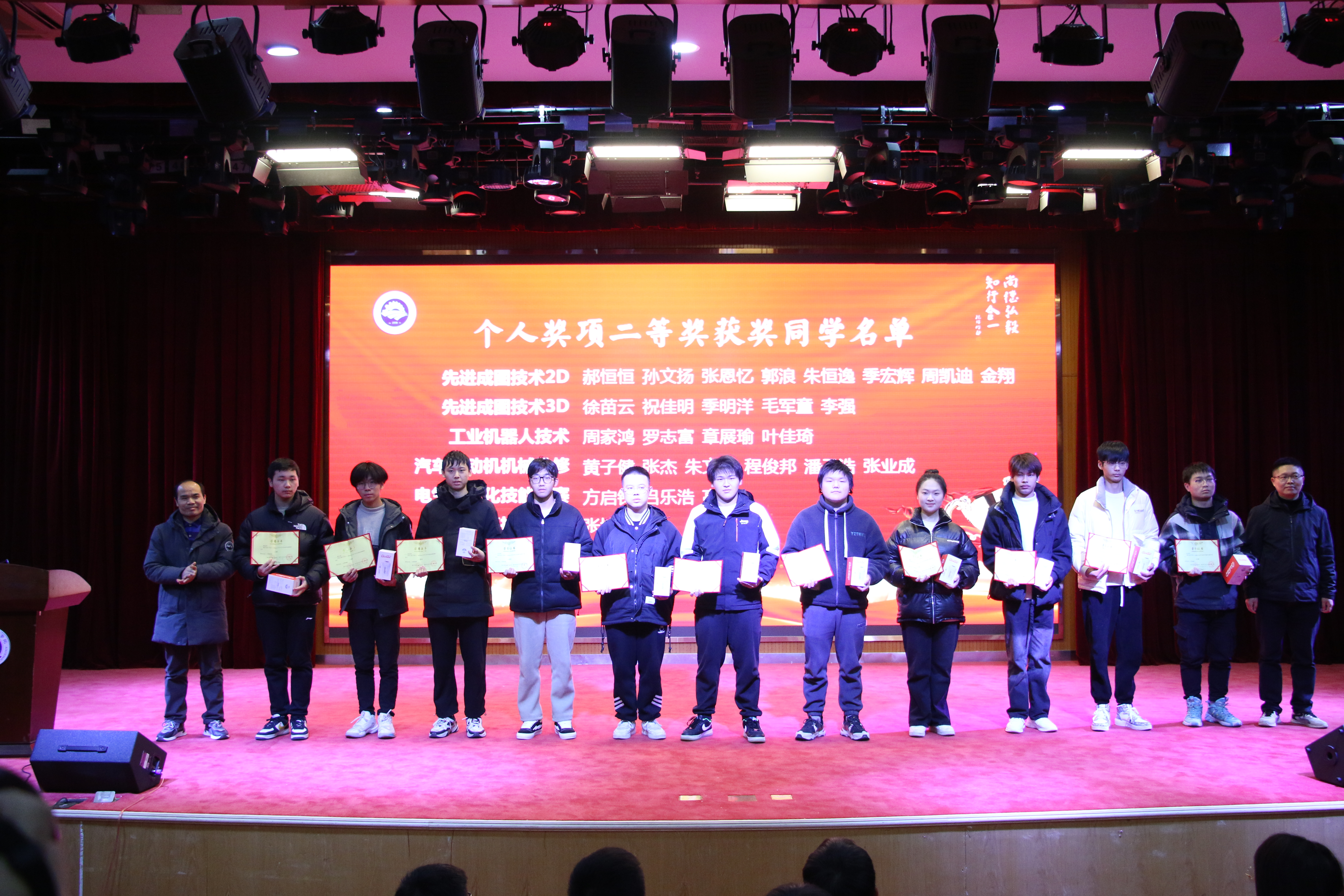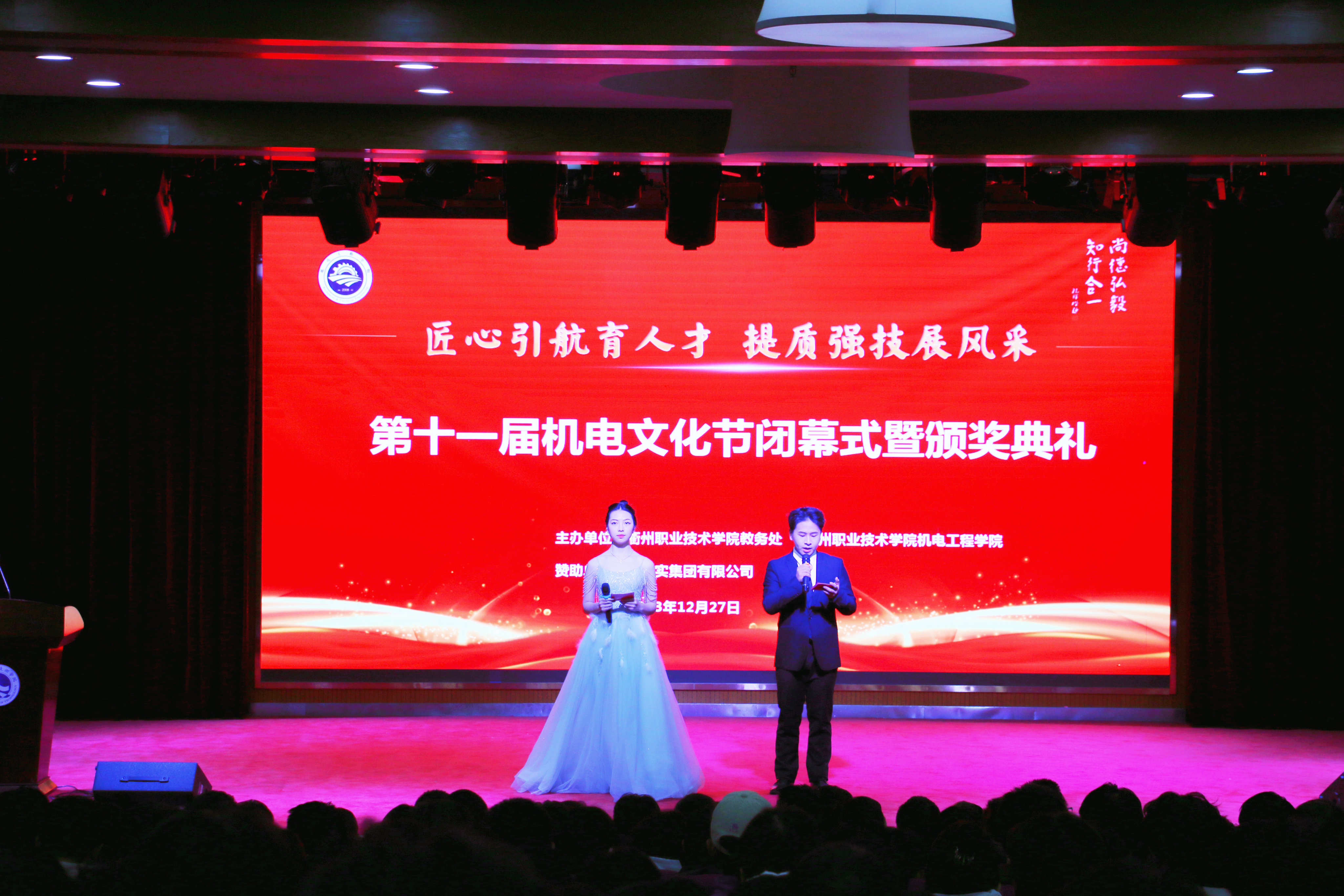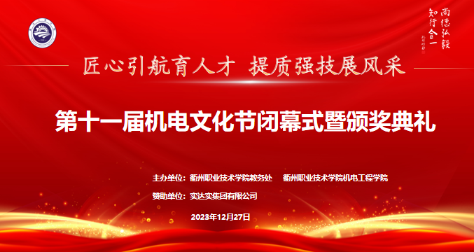 2023年12月28日第十一届机电文化节闭幕式暨颁奖典礼在一号报告厅隆重举行。经过一周的激烈角逐,各项赛事均已顺利完成。同学们在比赛中追求卓越、勇攀高峰,充分展现了机电学子树匠心、铸匠魂的精神风貌。出席本次闭幕式的嘉宾有实达实集团有限公司副总、商管部部长徐伟刚,tyc122cc太阳成集团党总支书记朱峻,tyc122cc太阳成集团经理魏小华,tyc122cc太阳成集团教务处副处长裴建兵,tyc122cc太阳成集团副经理徐文俊,以及全体机电教师和员工代表。