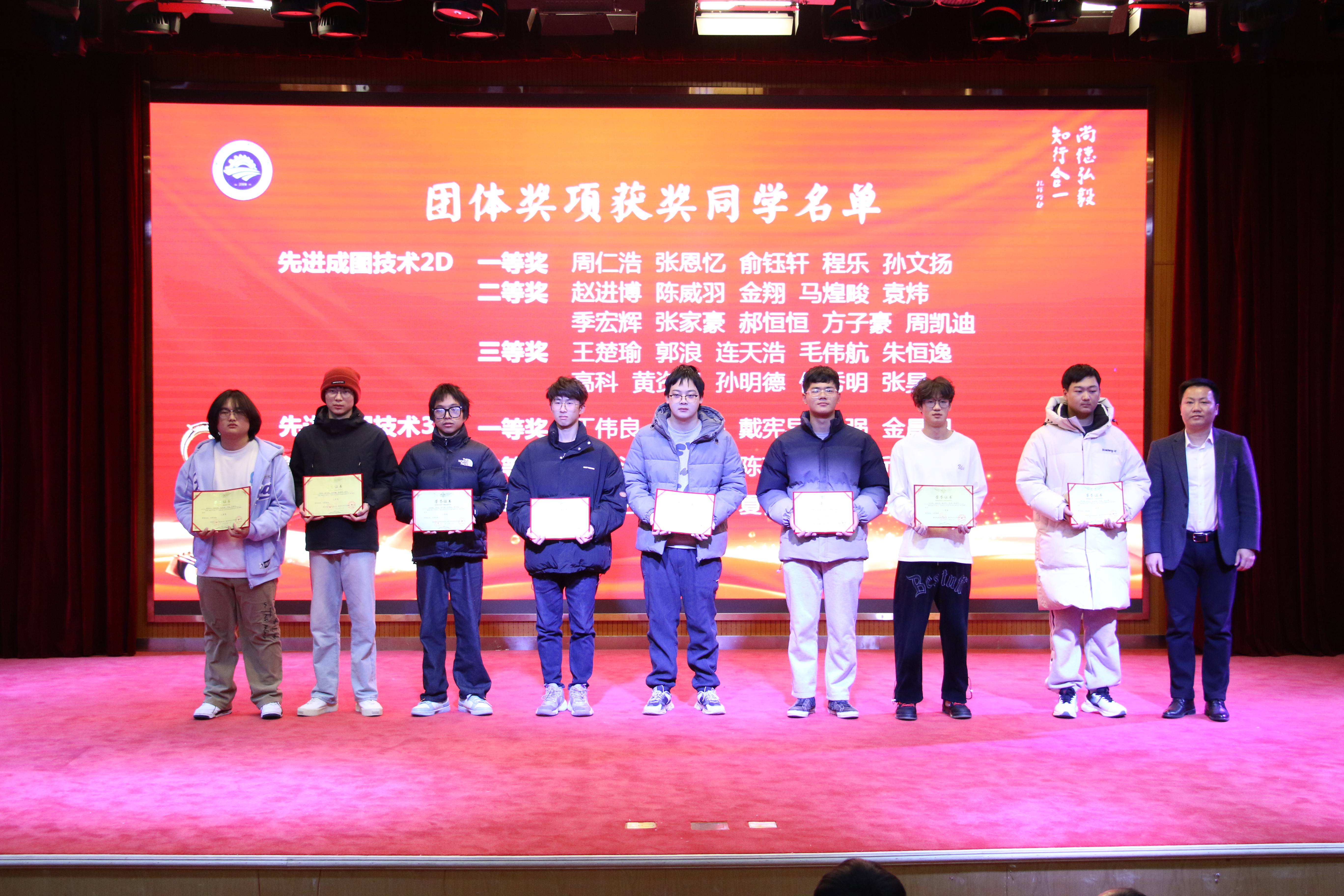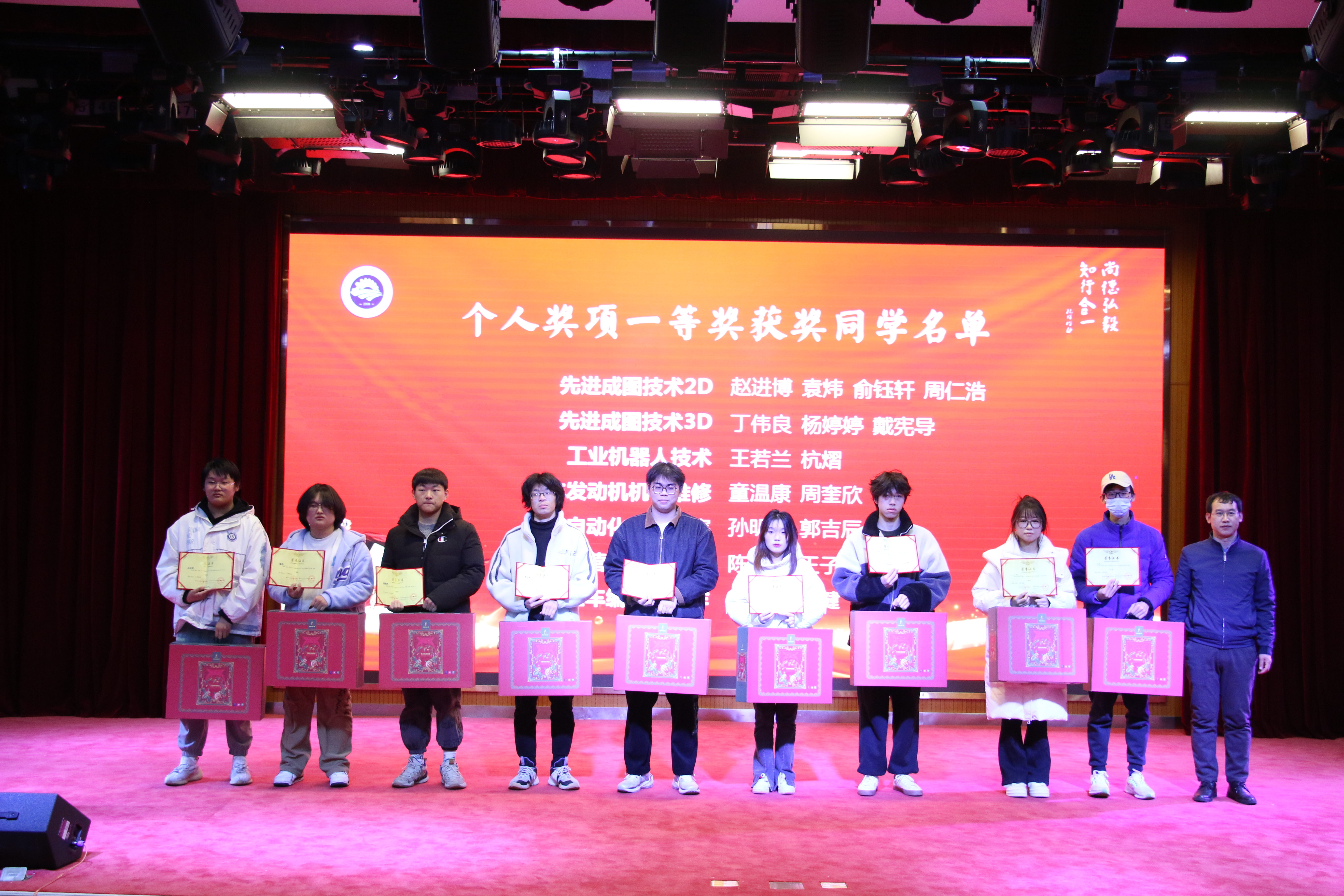 魏小华宣布《关于表彰第十一届机电文化节获奖同学的决定》,经各竞赛项目评委评定、学工办复审,tyc122cc太阳成集团第十一届机电文化节共评出个人赛一等奖赵进博等17人,二等奖郝恒恒等31人,三等奖欧阳南健等48人,团体一等奖2个,团体二等奖3个,团队三等奖3个,决定对以上同学及团队予以表彰。希望受表彰的同学能够珍惜荣誉,谦虚谨慎,发挥引领作用,再接再厉,再创优异成绩。其他同学要以优秀为榜样,树立正确的理想信念,提高技术技能水平,促进全面发展,努力在今后的学习、工作中取得优异成绩。