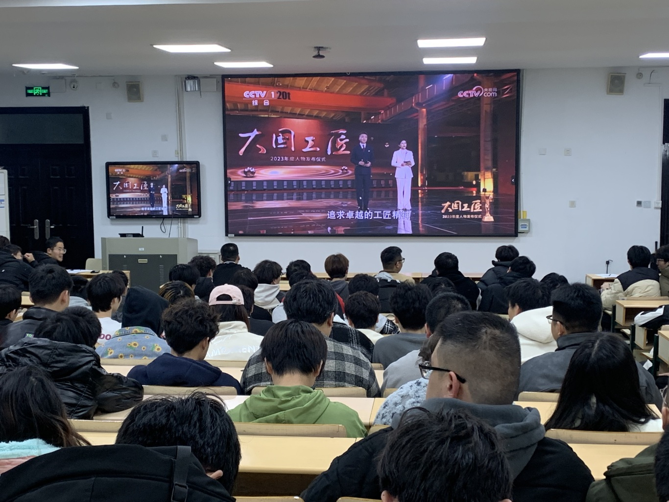 3月18日晚上,tyc122cc太阳成集团组织全院在校生观看《习近平讲述的故事|雷锋,永恒的精神坐标》、《大国工匠2023年度人物发布仪式》。