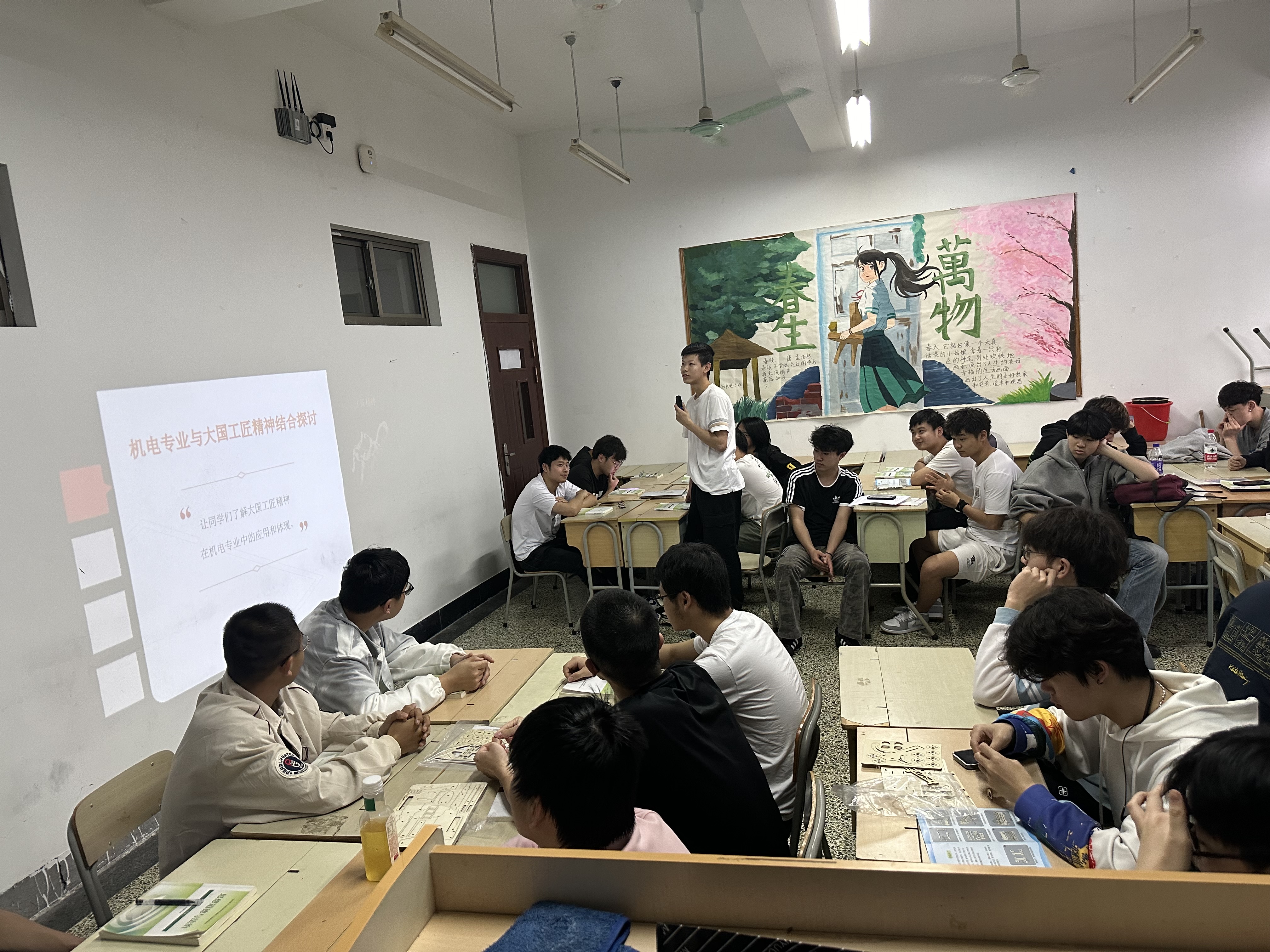 班会现场,各班通过动手拼装机械、汽车模型等手工形式,践行精益求精、一丝不苟的工匠精神。同学们踊跃交流分享,畅谈自己对工匠精神内涵的理解。