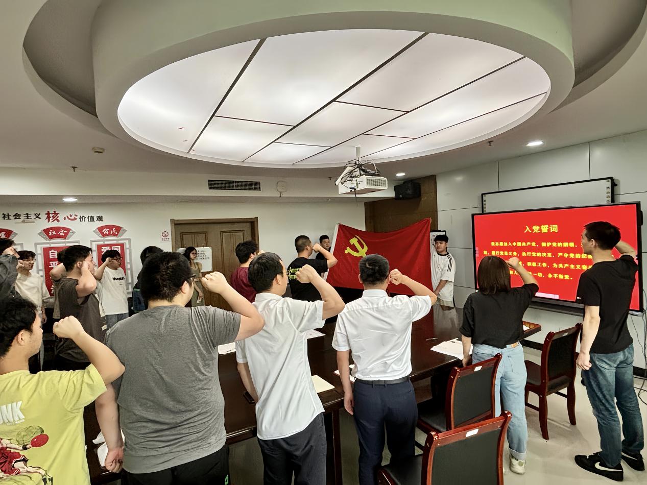 为进一步提升毕业生党员的党性修养,坚定理想信念,与会全体师生党员在叶云霞的带领下面向党旗,重温入党誓词,回忆入党时的庄严承诺和坚定决心。