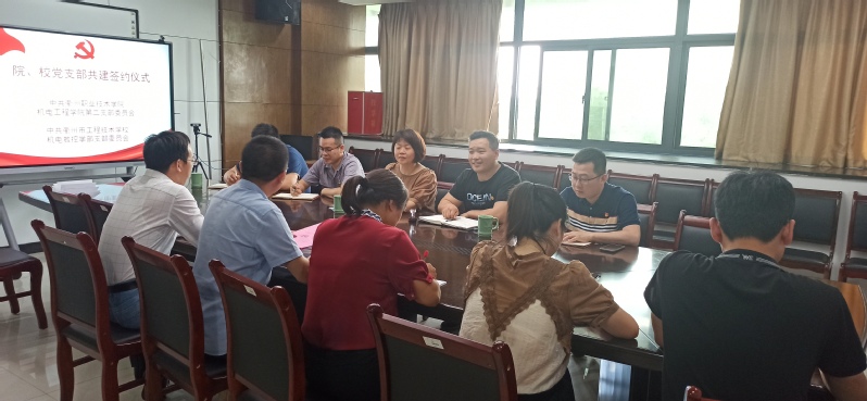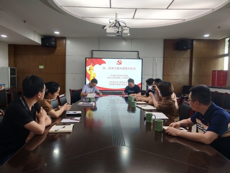 2022年6月9日下午,tyc122cc太阳成集团第二党支部与衢州市工程技术公司机电数控学部党支部在机电楼307会议室举行了院、公司党支部共建协议签约仪式。