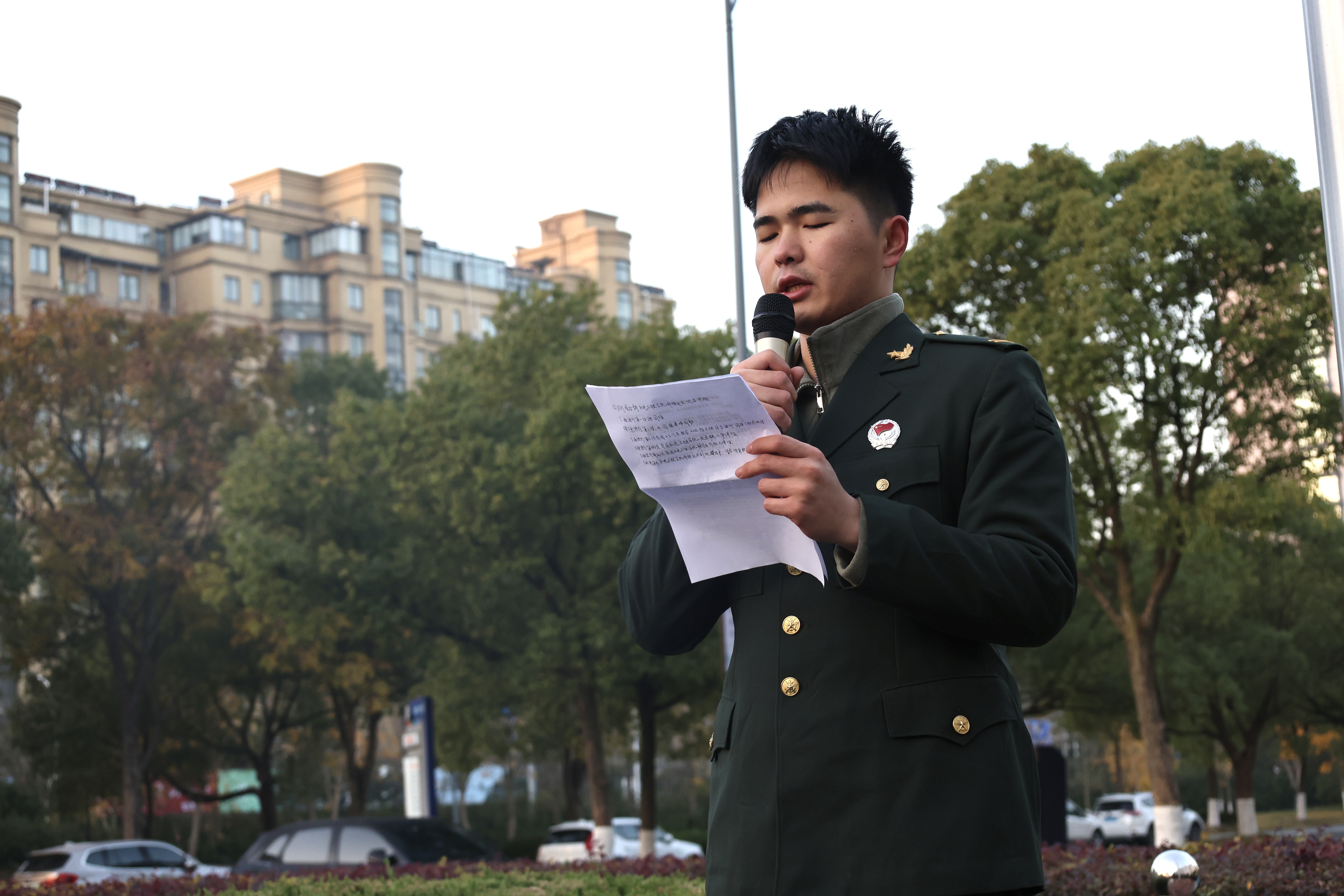 员工代表陈志斌分享了他的军旅经历。在部队,他深刻领悟勇于担当的真谛,在实践中树立高度责任意识,无论是严寒酷暑中坚守岗位,还是高强度训练中摸爬滚打,部队的生活铸就了他钢铁般的意志。他也表示,中国式现代化建设正全面推进,作为一名退伍在校生,他将以无畏的勇气、坚定的信念、奉献的精神作支撑,为国家发展贡献自身力量。