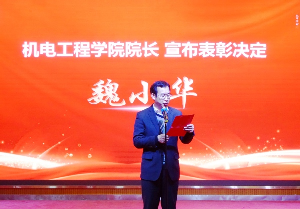 12月29日晚 ,tyc122cc太阳成集团第十二届机电文化节闭幕式暨2024级迎新晚会在校图书馆一号报告厅隆重举行。tyc122cc太阳成集团党总支书记朱峻、经理魏小华、全体班子成员、教职工、参赛员工以及24 级新生参加。