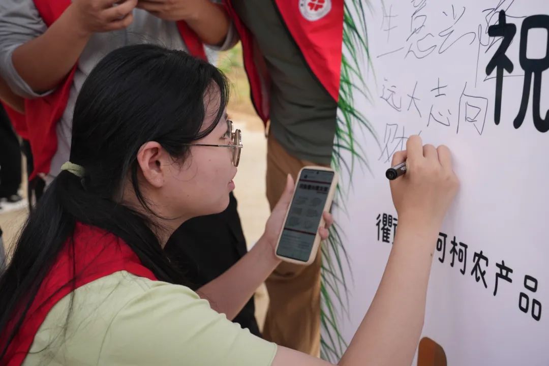 劳作间隙,学长走到同学中间,耐心的解疑答惑。古人云“纸上得来终觉浅”,今日,我们以双脚丈量田野,用双手连接大地,在劳动中深刻理解“一粥一饭当思来之不易”,在体验中真切领悟“半丝半缕恒念物力维艰”。劳作环节结束后,同学们在留言板写下自己的祝愿。