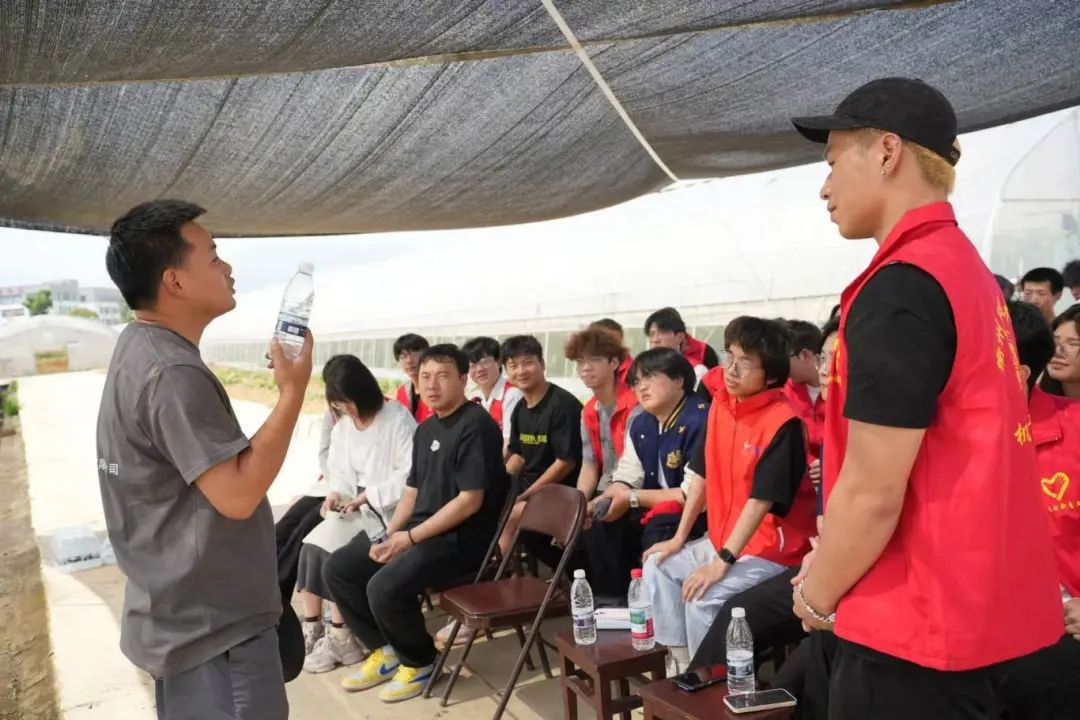分享结束后,同学们积极提问,现场气氛热烈,拉进了彼此的距离。随后,学长带领大家参观果园并进行劳务体验。其间,同学们积极投入活动环节,在果园工作人员的帮助下,同学们播种、犁地。尽管艳阳高照,但依旧打消不了同学们的积极性。