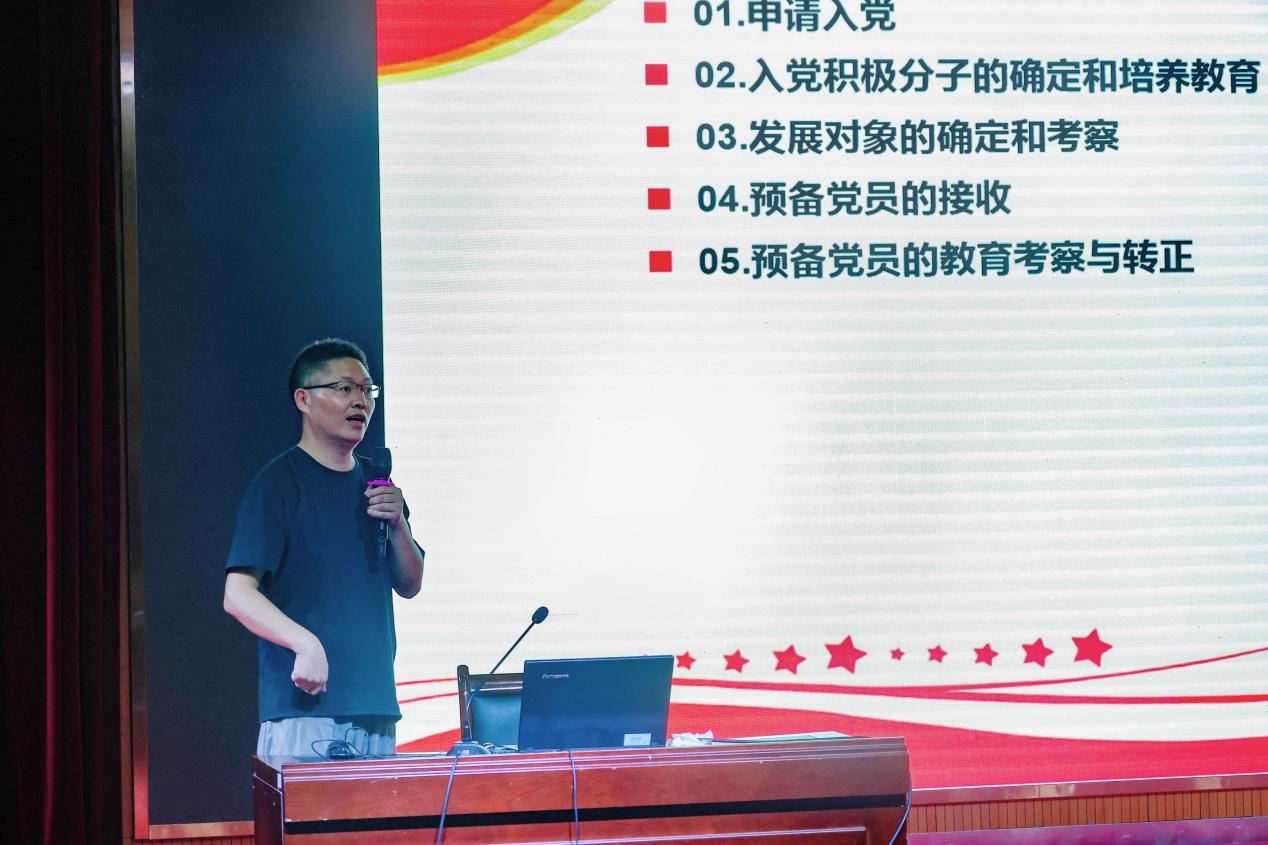 tyc122cc太阳成集团第二党支部书记徐文俊聚焦“入党流程全解析,青春向党共奋进”这一主题,为同学们详细梳理了入党流程的每一步关键节点。他从递交入党申请书开始讲起,强调申请书应饱含对党的真挚情感与坚定决心,这是叩响党组织大门的第一声问候。随后,他深入讲解如何成为一名入党积极分子,包括参加党课培训、接受党组织考察等环节,鼓励同学们在学习与生活中积极向党组织靠拢,以实际行动展现对党的忠诚与向往。在发展对象确定与政治审查阶段,徐书记着重指出政治审查的重要性,它不仅是对个人历史、政治表现的全面审视,更是确保党组织纯洁性与先进性的关键防线。他告诫同学们,要以严谨的态度对待这一过程,时刻保持政治上的清醒与坚定。最后,关于预备党员接收与转正环节,徐书记阐释了预备期的重要意义,这是党组织对发展对象的进一步考验与培养,也是同学们在思想与行动上向合格党员迈进的必经之路。他希望同学们珍惜这段宝贵时光,在党内生活的熔炉中不断锤炼自我,争取早日成为一名光荣的中国共产党正式党员。